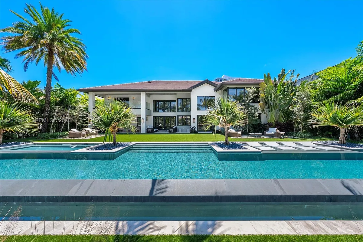 Welcome to 110 Holiday Dr in Golden Isles, a tropical modern estate curated by Pietra Casa Studio in one of South Florida’s most central waterfront neighborhoods. This sprawling residence is perfectly positioned on the lot, with soaring ceilings, a seamless family layout, and an 80 ft resort-style pool that anchors the outdoor living. Warm, bold design is expressed through white shell limestone, Tundra Grey marble, and rich natural textures throughout. Interiors feature Italian marmorino plaster, bespoke oak and marble furnishings, handmade lighting, and a Mia Cucina kitchen with Inalco slabs, SubZero and JennAir appliances. A fully realized design experience, inside and out.