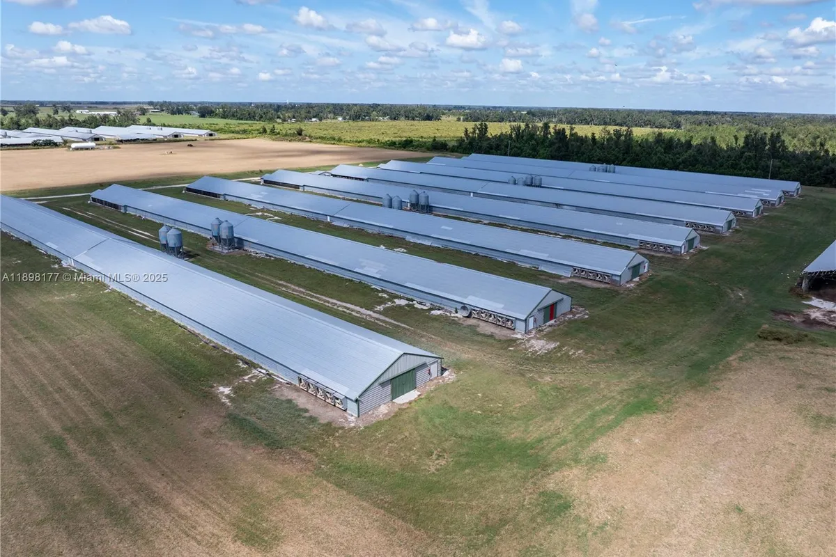 This working 67.56-ac. poultry broiler farm includes farm wells, septic tanks, eight 43' x 510' broiler houses, 50' x 80' litter storage building, 50' x 150' litter storage building, generator system and building, one site-built residence, and detached garage. Approximately 33.36-ac. and poultry improvements are listed for $1,525,000.