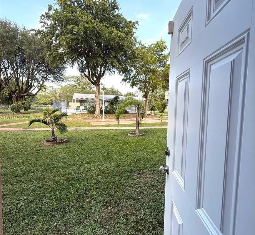 Fully remodeled 55+ condo, ready to move in! Convenience first floor with a large enclosed balcony as part of the living room with A/C, creating extra space and comfort. Back door with direct access to the pool and garden. Modern Kitchen with a granite countertop, bathroom with shower, new A/C and water heater, ceramic floor, assigned parking. Steps from the Bus stop & free trolley running all day. near Aventura, beaches. Well-maintained community. Come see it today!