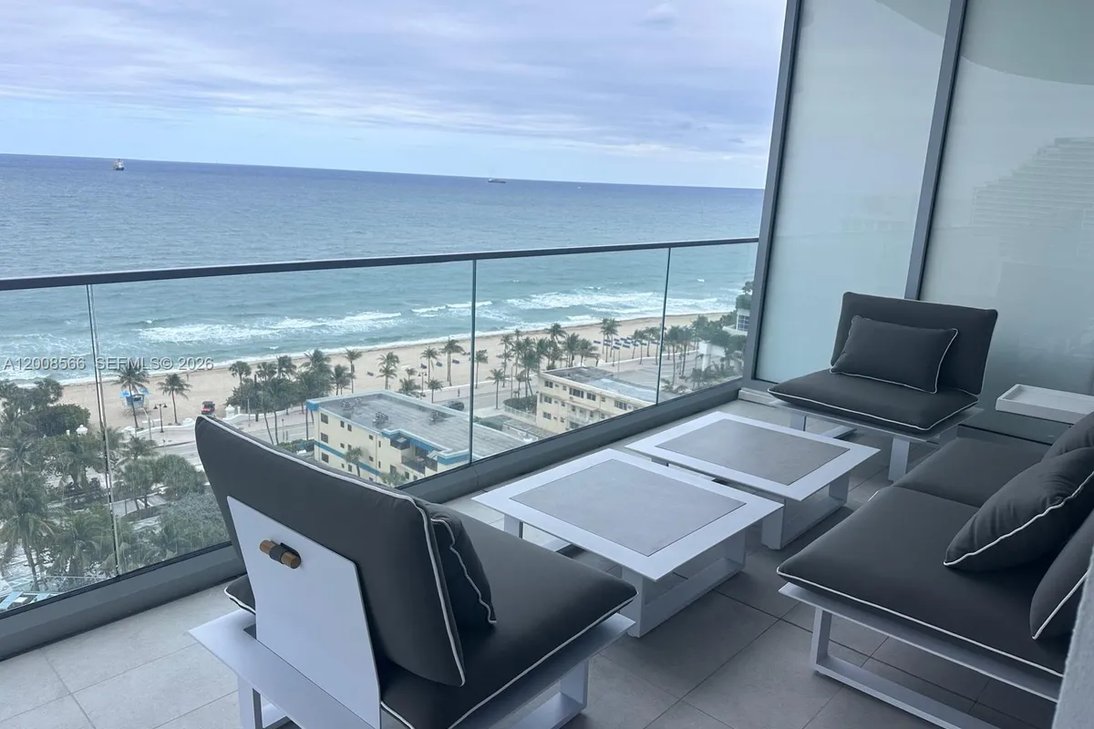 Brand-new corner residence featuring the most desirable line in the building. This 2-bedroom, 3-bath home plus enclosed den offers breathtaking direct ocean, Intracoastal, and city views from an expansive wraparound terrace. Floor-to-ceiling glass fills the open living spaces with natural light, complemented by refined finishes and oversized walk-in closets for a perfect blend of luxury and comfort. Enjoy an exceptional amenity collection including The Wave lounge with bar and billiards, Seasons with wine bar and dining spaces, a state-of-the-art fitness center, movement studio, and The Hub with private offices and conference rooms. A spectacular elevated beachfront deck features a resort-style pool, lap pool, spa, cabanas, fire pits, outdoor kitchen, and poolside bar—all set against panoramic Atlantic Ocean views. Luxury coastal living at its finest.