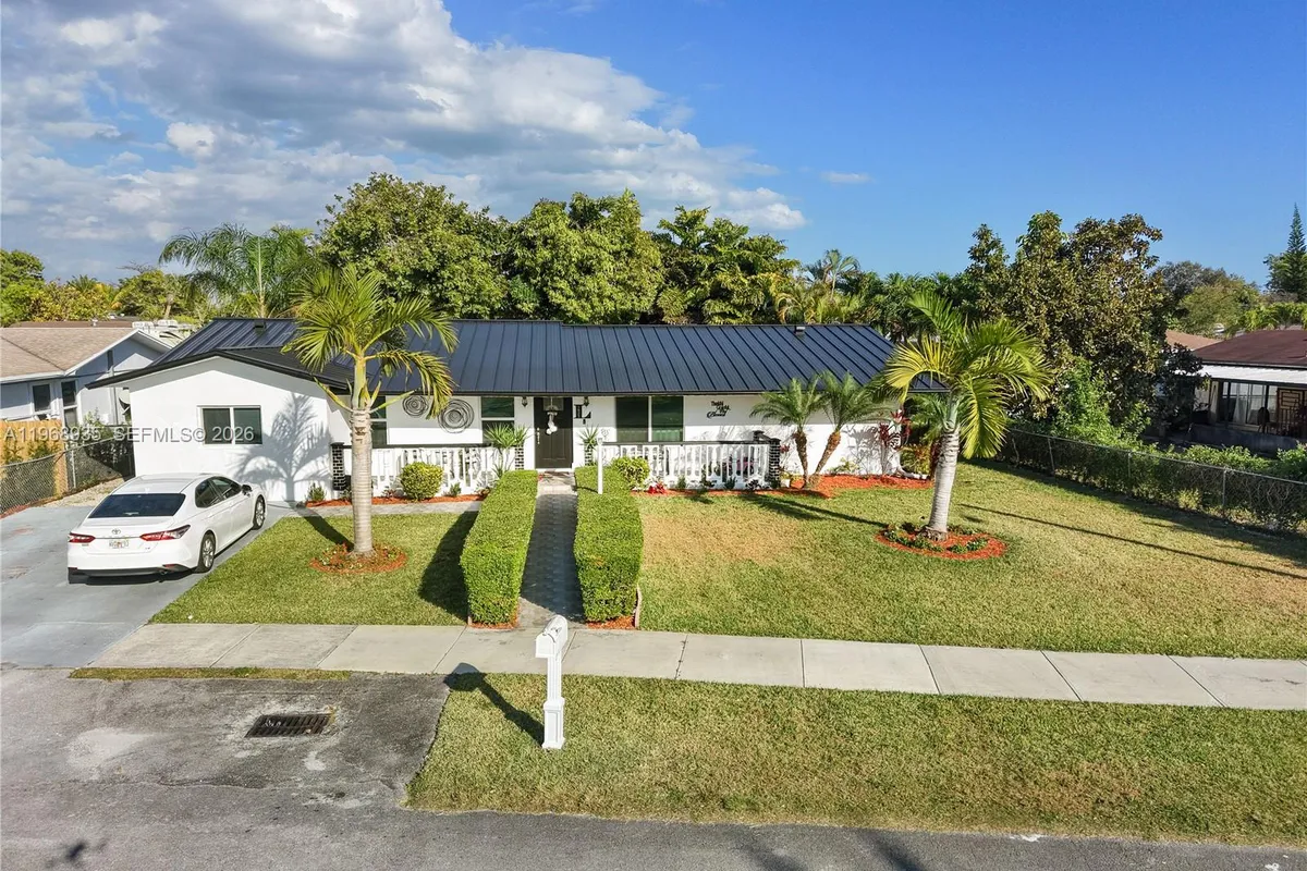 Spacious 4-bedroom, 3-bath single-family home with NO HOA and a classic traditional layout! Two bedrooms feature en-suite bathrooms, offering flexibility for guests or multi-generational living. The home includes a formal living and dining room plus a separate family room highlighted by a beautiful wood ceiling, creating a warm and inviting gathering space. Two additional storage closets provide extra functionality. The remodeled L-shaped kitchen offers stainless steel appliances, dine-in seating, and is separate from the formal dining area. Bathrooms have been tastefully updated. Major upgrades include a brand-NEW 2025 METAL ROOF and impact windows for peace of mind and insurance savings. Enjoy outdoor living in the fenced backyard with privacy landscaping, sparkling pool, and backyard shed for storage. The property also features a front porch area and sidewalk in front of the home. Conveniently located minutes from US-1, offering abundant dining, shopping, and everyday conveniences, and just a short drive to Zoo Miami. A fantastic opportunity to own a move-in-ready home in a prime location!
