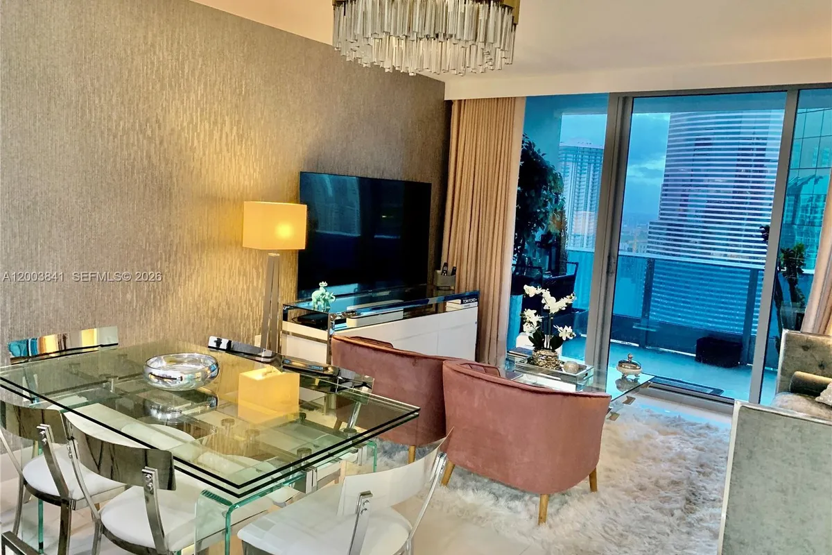 Luxurious unit! Featuring Versace wallpaper, 3D walls, blackout shades, and motorized fabric curtains. This top-floor one-bedroom, one-and-a-half-bath residence is priced competitively. It boasts premium Snaidero cabinets, Sub Zero and Miele appliances, Italian marble bathrooms, and custom Italdoors with magnetic locks. Enjoy stunning city and partial river views from the balcony. Amenities include a sunrise resort pool and a private sunset residence pool. Residents have access to cabanas, a spa, a fitness center, and both casual and fine dining on-site. Additional features include 24-hour valet, concierge, and security services. Located just 2 blocks from Whole Foods, within walking distance to Brickell City Centre, only 5 miles from South Beach, and 7.5 miles from Miami International Airport.