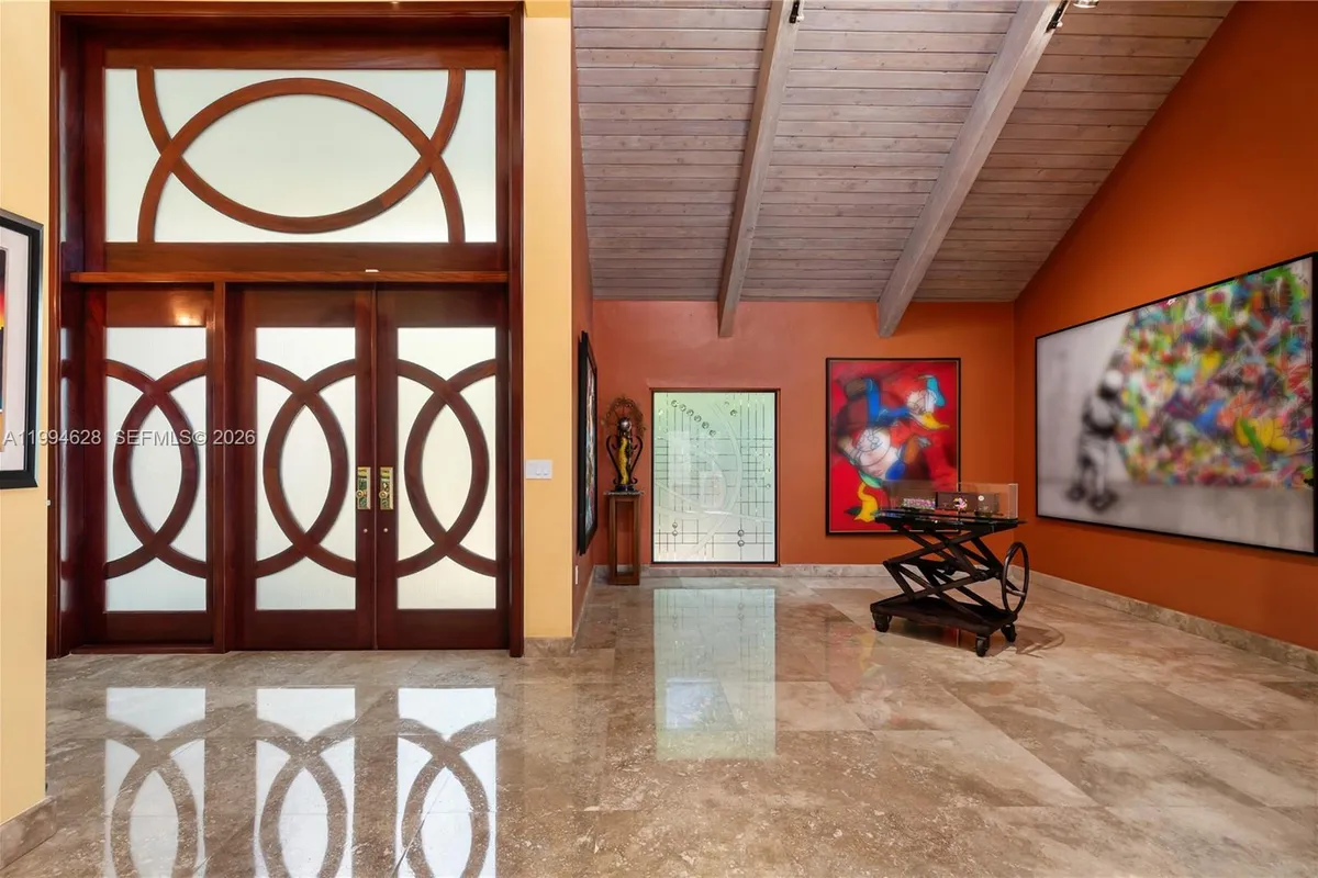 Stunning entry with large mahogany double doors and high ceiling foyer entry. This 5 bedrooms with 5 full and 2 half baths home features a true chefs kitchen by Mia Cucina featuring lighted glass and wood cabinetry, dual sinks, two dishwashers, SubZero refrigerator, Viking gas oven, Miele double oven and an array of extras for the chef in the family. The formal dining room has recessed lighting with wood beam accents. The eat-in kitchen has a view of the courtyard. And, adjacent to the kitchen is a temperature controlled wine cellar holds up to 1900 bottles. The center courtyard is accessible from a variety of different living areas which brings in a lot of natural light throughout. A major highlight is a custom built separate bar room nestled at the end of the courtyard. The courtyard gives entry to a private gate which allows access to the common areas which creates a large backyard feel.The first floor has a spacious maids quarters with full bath. Also, a large den that can be used as a media room. Skylights and mahogany doors are found throughout the house. Space for a private elevator. Upstairs you will find a large master bedroom with a separate sitting area and private sauna. The office and gym can be converted to a large bedroom. The junior suite has walk in closet with a large bathroom. The private community has a heated pool, tennis courts, pickleball courts, a dog park, security gate, a community center, a park, basketball, and soccer.