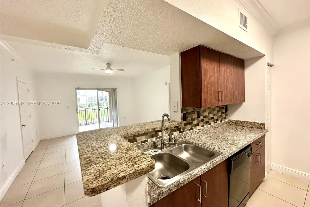 Enjoy serene garden views from the spacious patio of this 2-bedroom, 2-bath condo in the gated community of The Marquesa, Pembroke Pines. This first-floor bright and generously sized unit features tile flooring throughout the kitchen and the living room, and laminate floors in the bedrooms; an open kitchen with stainless steel appliances and granite countertops, and in-unit washer and dryer. Both bedrooms have a large walk-in closet, providing ample storage. The unit includes one assigned parking, and 1 additional space in the guest parking. Pet-friendly community allowing rentals during the first year of ownership and requires a minimum 700 credit score for the primary applicant. Residents enjoy resort-style amenities including a swimming pool, fitness center, clubhouse, movie theater, playground, picnic area, and security. Ideally located near Pembroke Lakes Mall, The Shops at Pembroke Gardens, Memorial Hospital, major highways, parks, and top-rated schools. Association approval typically completed within two weeks.
