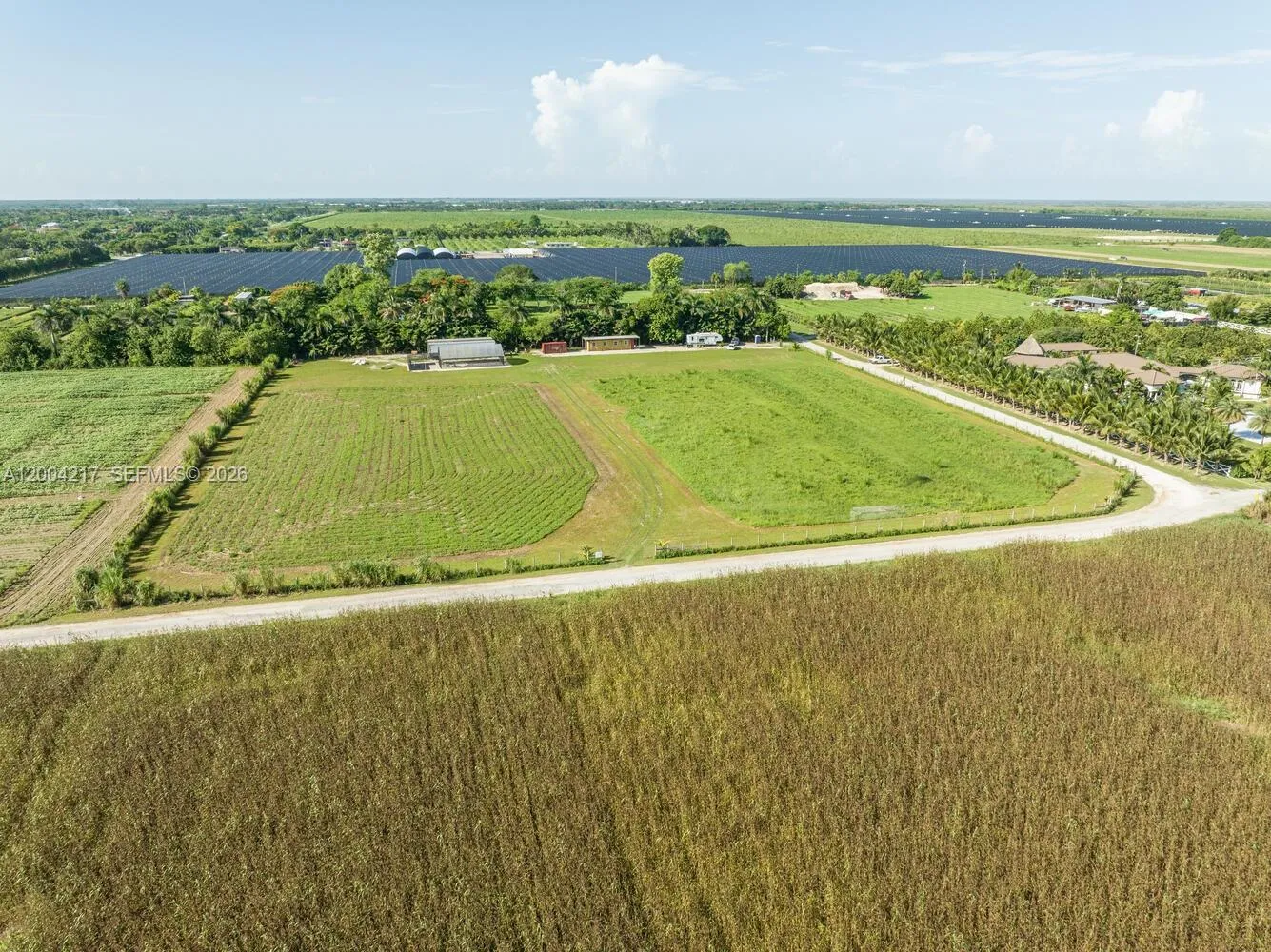 Exceptional opportunity to lease 5 acres of versatile farmland, fully equipped for a variety of agricultural or operational uses. Property features two on-site wells and electricity running throughout. Improvements include multiple containers: one 53-ft container with A/C, one 53-ft containers for dry storage, one 20-ft dry storage container, and a 40-ft fully built-out office container complete with electricity and air conditioning. Ideal for farming operations, nursery use, storage, or contractor yard. Ample space and infrastructure in place—ready for immediate use.