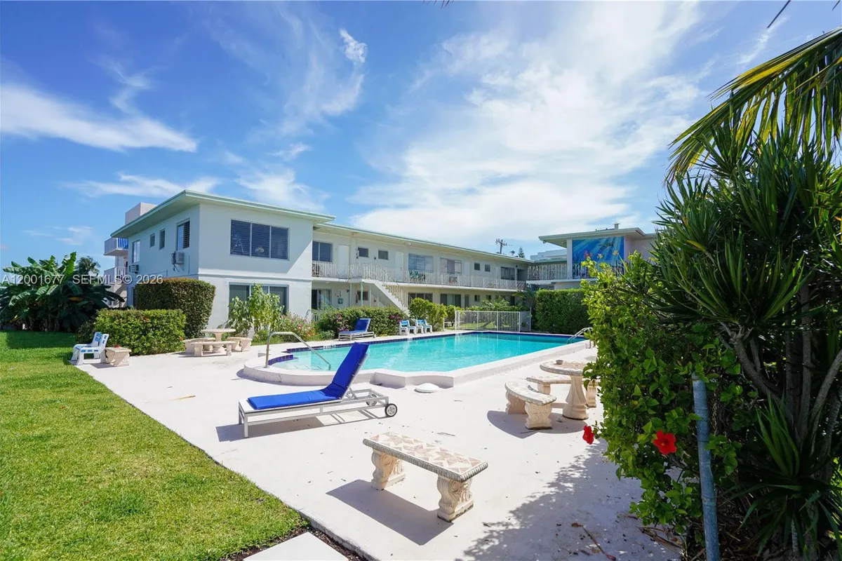 Super cute 1-bedroom in a charming garden-style waterfront building right on the Intracoastal in North Beach. This 663 SF unit is in great condition, with tile floors throughout and a bright, comfortable feel. The kitchen has been updated and includes a gas stove, dishwasher, and stainless steel fridge, plus a back door off the kitchen. The building has that classic Art Deco charm, with a pool and a brand-new deck overlooking wide bay views—perfect spot to relax and enjoy the water. Great option to live in or invest. Easy walk to restaurants, markets, and everything you need nearby. Definitely worth seeing in person!