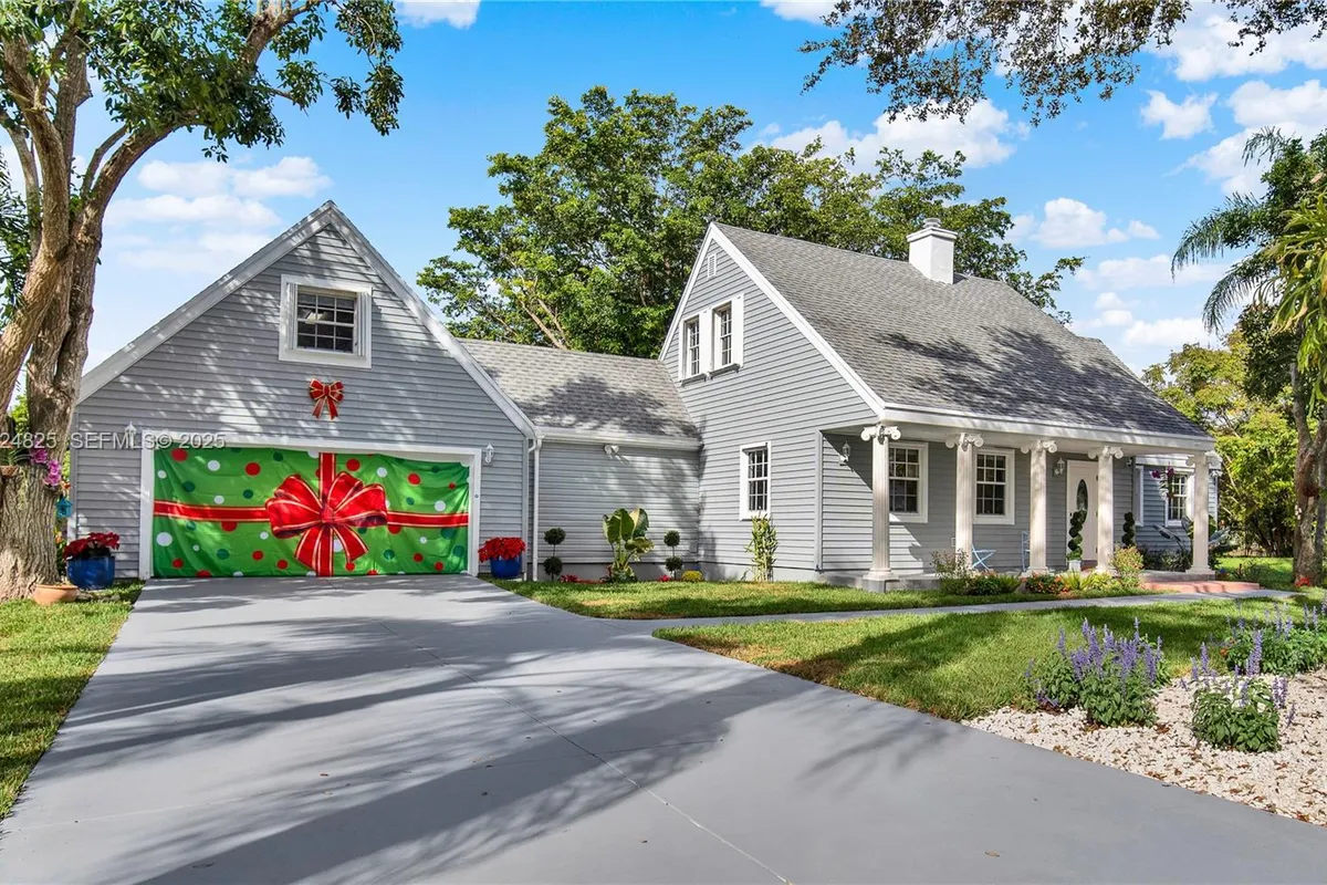 Beautiful 2 story charming Cape Cod architectural style home on almost an acre in the suburbs of Miami, and in the heart of historic Redlands. This lovely property offers a rural quality experience at its best, with mature trees, and tropical plants, that allows you to enjoy nature, with colorful vegetation all year round. This jewel is fully fenced, gated, with alarm. Situated on a generous corner property. It offers windstorm window protection, 2 car garage with hurricane impact doors, a new and oversized driveway that will fit 8 cars, an oversized attic that could also be used as an office or kids’ playroom, 2 A/C units, 2 exquisitely renovated bathrooms. 2BD downstairs with customs closets. The primary bedroom is upstairs, which offers a extra room, with custom closets, wood floors, and new wood stairs. The kitchen has been entirely remodeled with a beautiful white quartz countertop and backsplash, top of the line appliances, and porcelain floors. There is a formal living/dining room. Ample parking for several vehicles at front, back and sides of property, new water well with new irrigation system. Property offers ample space to build an in-law’s quarters, pool, or Tiki-hut, R/V and boat parking, etc. Near wineries, two blocks from a walking/biking trail, orchid farms, and private airport, short drive to Florida Keys and Kokomo. Security system and cameras throughout property.