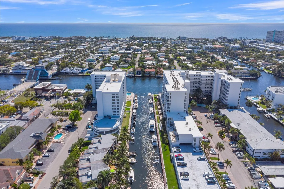 Luxury waterfront living at its finest. Dock your boat outside your apartment. Beautifully remodeled 2-bedroom, 2-bathroom condominium located on the penthouse floor. Designed with top-quality brands and materials, this residence is filled with natural light and features a large picture window with serene ocean views. The thoughtfully designed interior includes elegant ceramic tile flooring, crown molding, recessed lighting, custom shades, custom built-ins by California Closets, a custom queen Murphy bed, ceiling fans and a modern kitchen equipped with Samsung appliances, granite countertops and a large, stacked washer/dryer. Step outside to a spacious balcony that seamlessly connects the living room and bedroom, perfect for entertaining while enjoying the coastal water views. Additional highlights include highly sought-after inside garage parking on the ground floor conveniently located near the elevator. The Pilot House waterfront community in Coral Ridge Country Club Estates offers lobby security, fitness center, heated pool, barbeque area with outdoor dining, community lounge, pet friendly building, cable TV & Wi-Fi. Boat slip rentals when available. Ideally located just minutes from Lauderdale by The Sea, the beach, shops and local restaurants. Experience resort living at its finest.