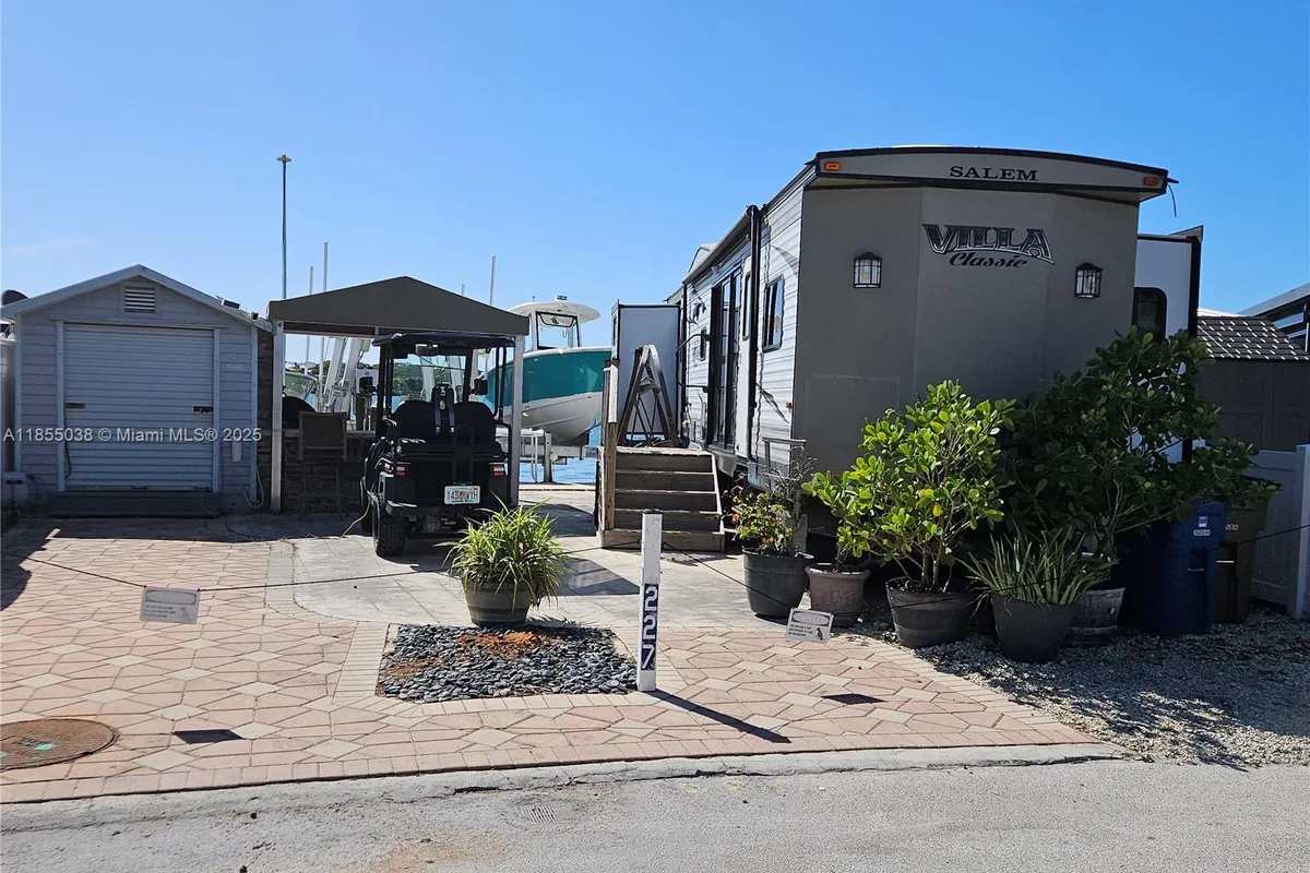 Breathtaking bay views from your own backyard. RV lot in Calusa Campground with two boat lifts, one 10K lbs. the other 7K. 45' long Salem Villa Park Model trailer with 4 slide outs, 2 bedrooms, one and a half bath. 4 a/c’s, full size refrigerator. Furnished ready to move in. Covered outdoor kitchen & cool deck throughout. All done with permits! 10 x 8 storage shed. Golf Cart included. Use it as a weekend get-a-way or rental income. Calusa is one of the few communities in the Keys that allow short term rentals. Amenities like a marina/boat ramp, dockage, storage, security, tennis and basketball court, playground, laundry, pool. The property is close to several restaurants, shopping, entertainment... ** Owner financing available with a good down payment ** Come see it and you will love it!