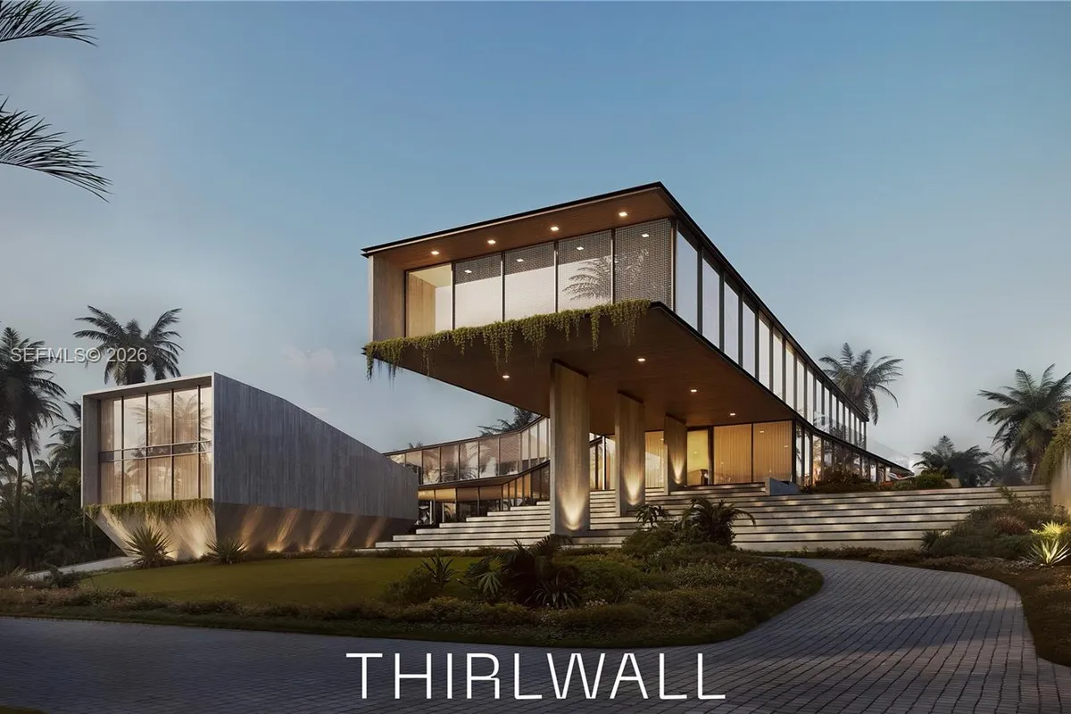 Opportunity to build your dream home on near 50,000 sq foot lot. Conceptual design by Thirlwall Architecture inspire your new luxury waterfront estate with direct Biscayne bay views. Building code allows new build size up to 39,200 sq foot home, with concept design showing extraordinary 21,000 sq foot residence with 10 beds + 12 bath, 2,000 sq ft gym/spa sanctuary with sauna, steam, cold plunge, treatment rooms. Suspended staircases, office suite, theatre, hair salon, games room. Detached guest suite, padel tennis court, glass-enclosed climate-controlled car gallery for 14+ cars. Sale includes 22,000 sq ft.² strip of mangrove forest. Conceptual design only not yet approved and buyer must complete plans, permits, and construction. $21 million for land only.