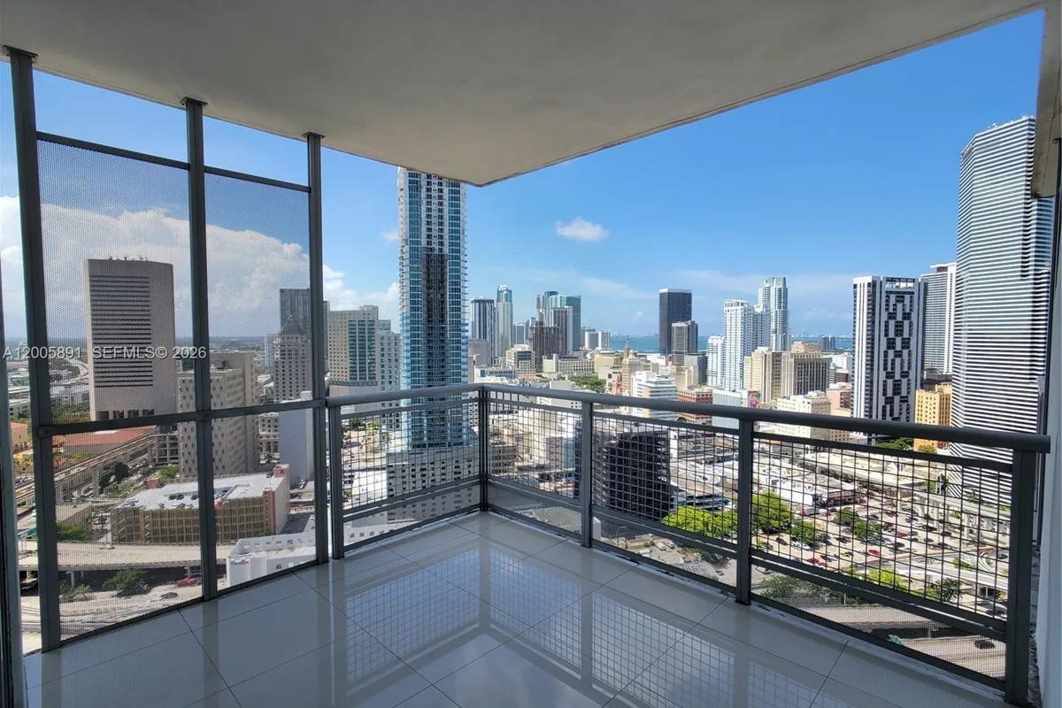 Excellent higher floor 1bed/1bath condo at The Wind. This unit features city views facing NE, stainless steel appliances, a spacious balcony, ceramic flooring, granite counter tops and the bedroom is enclosed!. Please look at 2nd photo for the floor plan, it's freshly painted, cleaned and ready to move in. Building amenities include valet parking, pools, sauna, hot tubs, exercise room, a theater and more. Location couldn't be better, just a 5 minute walk to Brickell City Centre.