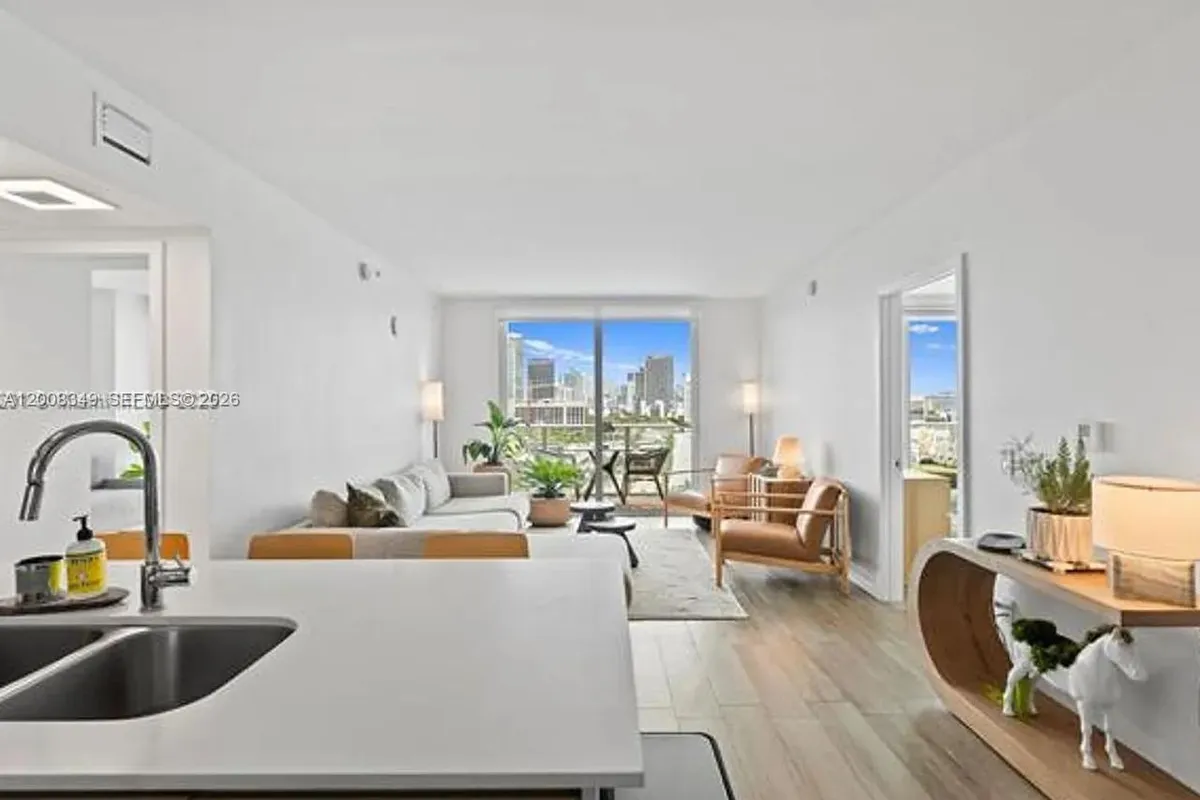Live in the center of it all at Baltus House, ideally located just steps from the Miami Design District and minutes to Midtown and Wynwood. This beautifully updated residence features a desirable split floor plan with 2 spacious bedrooms, 2 luxurious bathrooms, plus a versatile den ideal for a dining area or home office. Highlights include wood-look porcelain tile flooring, a sleek open kitchen, and a renovated walk-in shower in the primary bathroom. The primary suite also offers a rare walk-in closet, a unique feature in this building. Filled with natural light, the unit showcases sweeping downtown skyline views alongside stunning Miami Beach water views, offering both serene sunrises and breathtaking sunsets. Residents enjoy resort-style amenities including a bayfront pool, hot tub, cabanas, fitness center, and stylish clubroom. The rooftop level features a sundeck, summer kitchen, outdoor lounge, and plunge pools. Offered fully furnished but can also be offered unfurnished for ultimate flexibility.