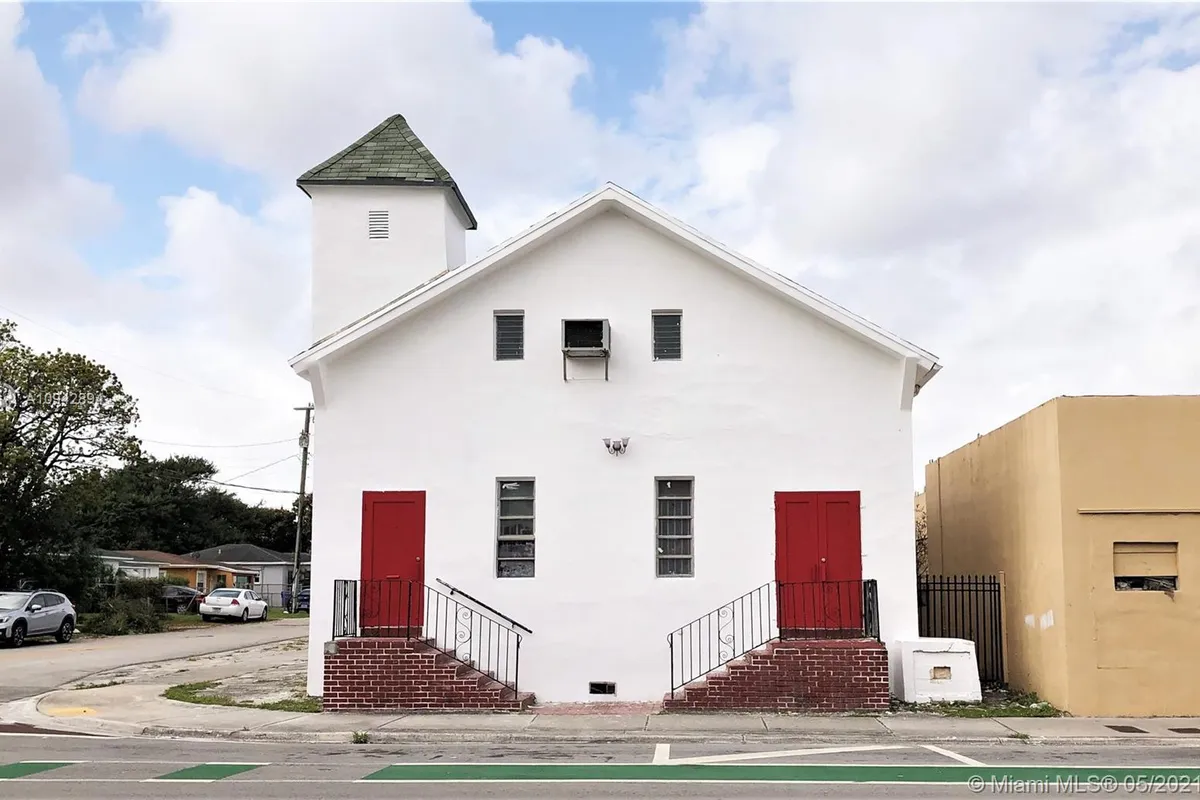 Located just across the street from the newly constructed Townhomes of Liberty Square. This unique free-standing structure, built and currently used as a church, is within the T4-L zone allowing for multiple uses including General Commercial, Multi-Family, Food Service, Office etc. Also located within a Community Opportunity Zone. 5 parking spots plus street parking. New Roof and air conditioning. 2 bathrooms, kitchen, office & party room. Mezzanine balcony of approximately 400sf currently closed & in need of flooring repair. As per the survey (attached) the lot extends 5 feet beyond the north wall of the building. Located on the highly visible corner of NW 15 Ave & NW 66th Street, Liberty City in the heart of Miami.