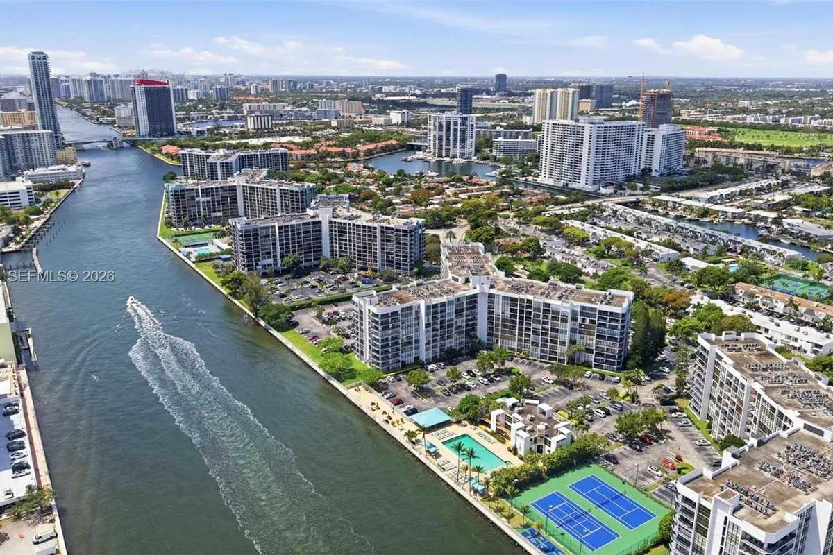 Enjoy stunning picture-perfect views of Intracoastal & partial Ocean from this 5th floor condo featuring floor-to-ceiling windows. Beautifully maintained 1 bedroom condo with DEN and 1 bath plus 1 half bath. ALL UPDATED SS KITCHEN appliances. PORCELAIN floors throughout the entire condo! Newly refinished bathtub with new faucets. Resort-style living includes a waterfront pool, fitness center, tennis courts, 24-hour security and more. HOA fees cover basic cable/high speed internet and water. Building is situated in the highly desirable Three Islands neighborhood that is only 5-minute drive to the beach, restaurants and shops. Make your change to live the Florida lifestyle come true.