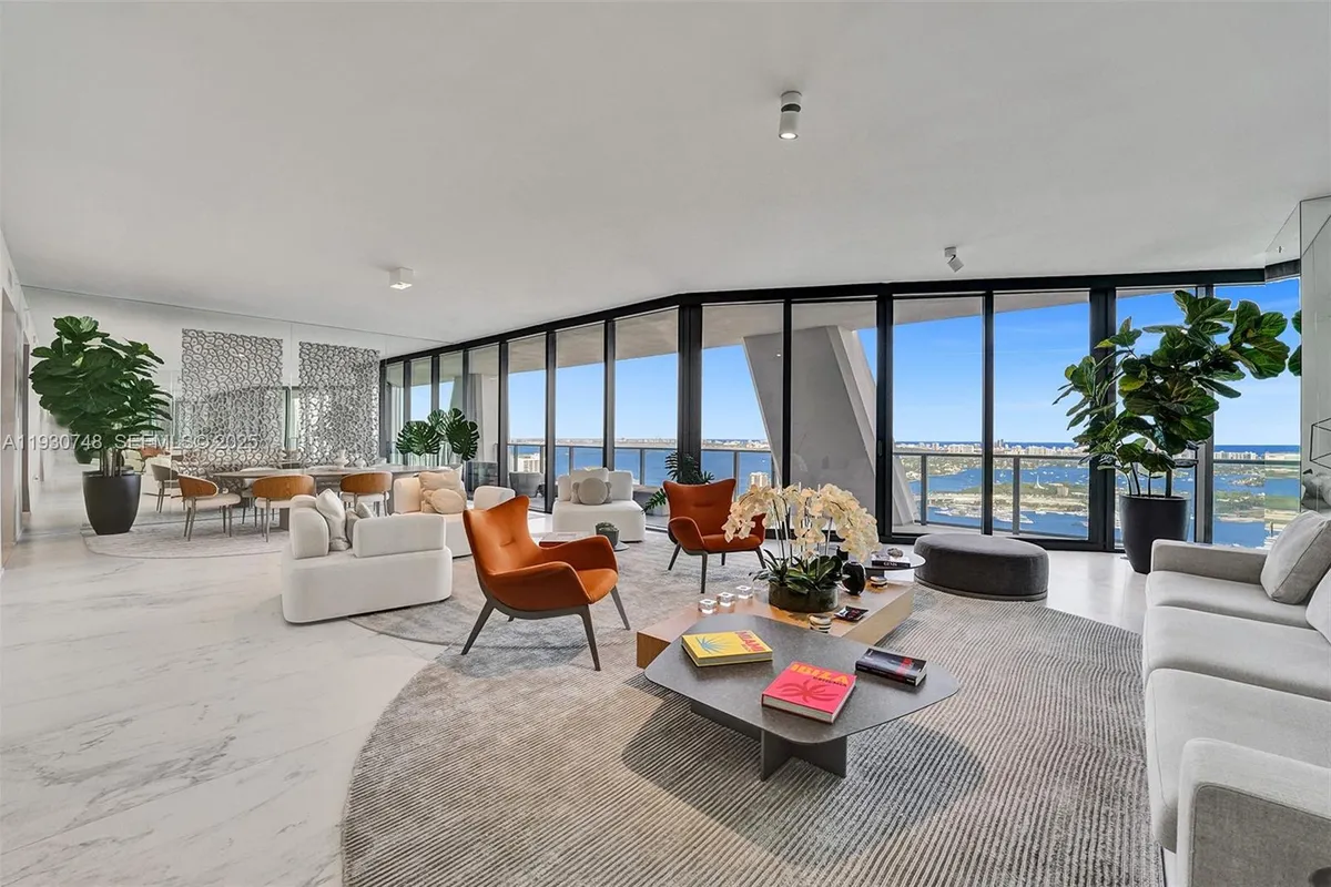 Welcome to the home of your dreams at One Thousand Museum, the iconic residential masterpiece designed by world-renowned architect Zaha Hadid. This expansive 4-bedroom, 5.5-bathroom corner residence offers a rare flow-through layout and is fully furnished by Artefacto, blending timeless elegance with contemporary sophistication. Enjoy breathtaking intracoastal and Biscayne Bay views from every room, with endless sunrises and sunsets that frame the Miami skyline and waterfront. Spanning approximately 4,600 square feet, this residence delivers an exceptional sense of scale, light, and privacy, making it ideal for both everyday living and grand entertaining. The thoughtfully designed layout provides seamless transitions between formal and informal living spaces, while floor-to-ceiling windows flood the home with natural light. The residence has been impeccably maintained and reflects the highest standards of luxury living. The gourmet kitchen is equipped with top-of-the-line Gaggenau and Sub-Zero appliances, custom cabinetry, and premium finishes, complemented by a state-of-the-art home automation system. Additional features include four parking spaces, a private storage unit, and a dedicated vault, offering both convenience and enhanced security—rare and highly desirable amenities in a residence of this caliber. This is a rare opportunity to own a truly iconic home within one of Miami’s most celebrated architectural landmarks.