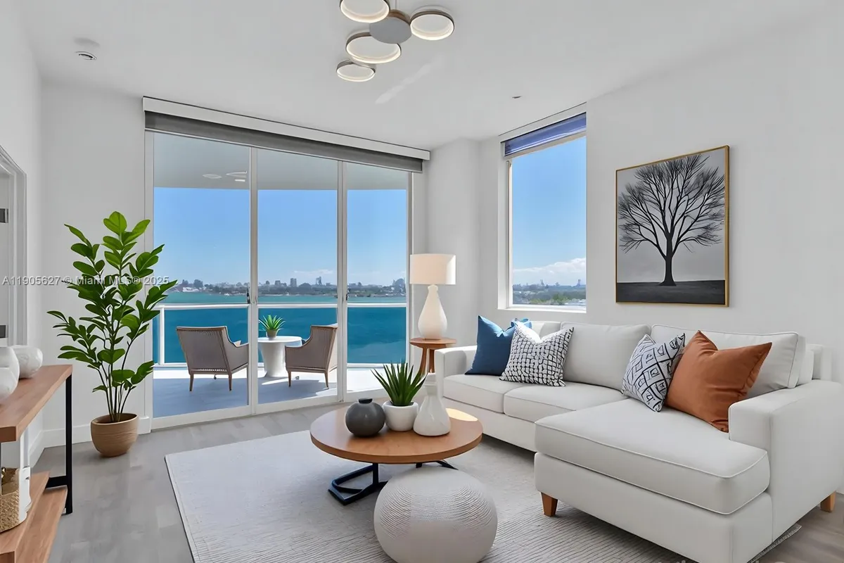 Welcome to the New Wave Condo! This rarely available corner unit is filled with natural light and features 2 bedrooms and 2 bathrooms. Enjoy high ceilings, which enhance the spacious feel, along with a remodeled kitchen equipped with stainless steel appliances and quartz countertops. Both bathrooms have been elegantly updated. The unit includes three balconies, offering stunning views of the bay and city skyline. The master suite features a luxurious en-suite bathroom and ample closet space. Residents have access to a pool, fitness center, and social lounge. Ideally located near shopping, dining, and the beach, this condo is perfect for those seeking a vibrant lifestyle. Don't miss this opportunity!
