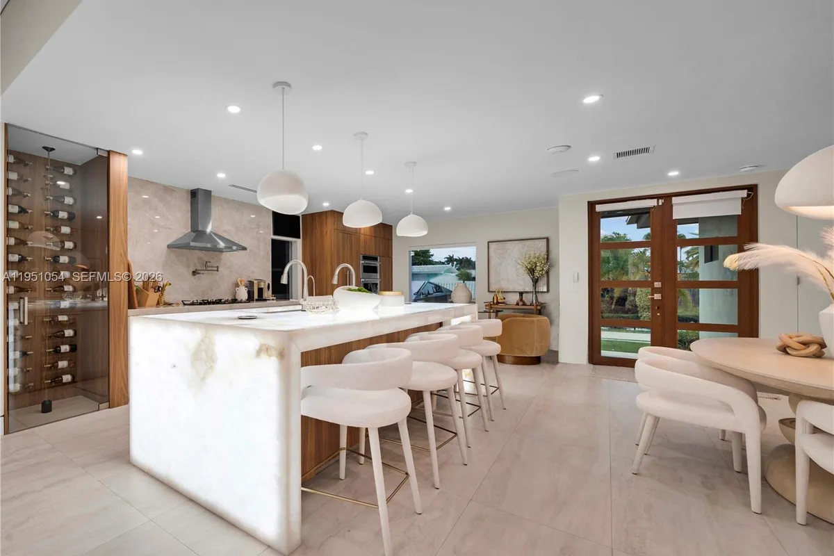 Thoughtfully designed and meticulously selected with over 3,000 sq ft, this residence offers 4 bedrooms, 4 full baths, and a half bath, ideally located just minutes from Las Olas Boulevard and beach access. Each room has been intentionally designed with attention to detail, creating a seamless blend of comfort, function, and modern elegance throughout. Refined living spaces feature a statement kitchen, gas range, privacy switchable shower glass, premium finishes, and a fully integrated smart home system with controls for audio, cameras, and window treatments. Outside, the property opens to a private oasis with a saltwater heated pool with smart automation, a custom outdoor grill/hibachi table, an outdoor waterfall feature, and smart technology extending to exterior systems ideal for relaxation and entertaining.