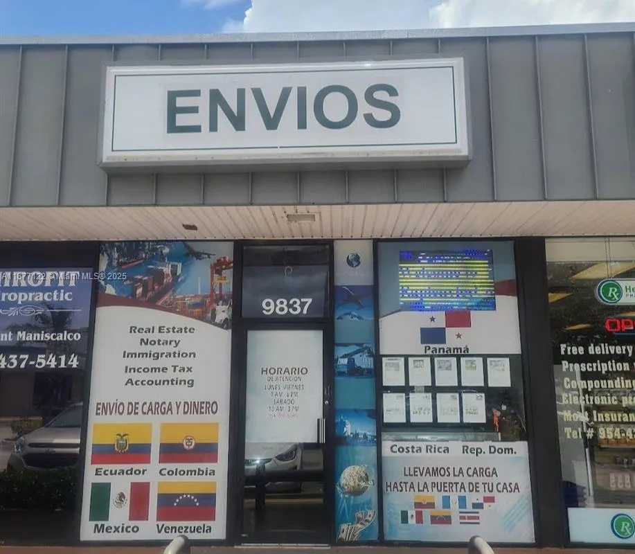 PRICE REDUCED, Retail store in Palm Square, oriented in cargo & shipping transportation to central and South America, shopping center located directly on Pines Boulevard, prime retail area of Pembroke Pines in the heart of Broward County. Palm Square features free-standing national tenants Dunkin’ Donuts and KFC, as well as prominent inline tenants such as Colombian restaurants, los Verdes & Frijolitos also, several other established local, regional. The center features ample parking and good visibility to Pines Boulevard via 600 linear feet of frontage where the traffic count exceeds 52,000 vehicles per day along the main retail corridor. This infill Broward County location is home to a population of more than 160,000 people within a 3-mile radius with an average household income $65,000.